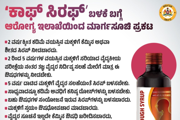 ಬೆಂಗಳೂರು : ʼಕಾಫ್ ಸಿರಫ್ʼ ಬಳಕೆ ಬಗ್ಗೆ ಆರೋಗ್ಯ ಇಲಾಖೆಯಿಂದ ಮಾರ್ಗಸೂಚಿ ಪ್ರಕಟಿಸಲಾಗಿದೆ. ಮಕ್ಕಳ ಸುರಕ್ಷತೆಯನ್ನು…