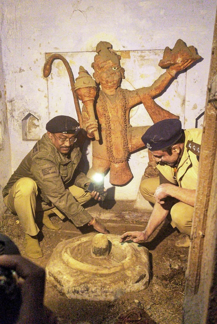 ಉತ್ತರ ಪ್ರದೇಶದ ಸಂಭಲ್ನಲ್ಲಿರುವ ಭಸ್ಮ ಶಂಕರ ದೇವಾಲಯದ ಬಳಿ ನಡೆದ ಬಾವಿ ತೋಡುವ ಕಾರ್ಯದಲ್ಲಿ ನಾಲ್ಕರಿಂದ ಆರು ಇಂಚಿನ ಮೂರು ಪ್ರಾಚೀನ ಮೂರ್ತಿಗಳು ಪತ್ತೆಯಾಗಿವೆ. 46 ವರ್ಷಗಳ ಬಳಿಕ ಡಿಸೆಂಬರ್ 13 ರಂದು ಮರುಕಳಿಸಿದ ಈ ದೇವಾಲಯದ ಸುತ್ತಮುತ್ತ ನಡೆದ ಈ ಕಾರ್ಯದಲ್ಲಿ ಈ ಮೂರ್ತಿಗಳು ಪತ್ತೆಯಾಗಿವೆ.