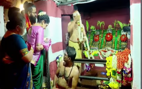 ನಟ ರಿಷಬ್ ಶೆಟ್ಟಿ ಕುಟುಂಬ ಸಹಿತರಾಗಿ ದೇವಿಯ ದರ್ಶನ ಪಡೆದುಕೊಂಡಿದ್ದಾರೆ. ನಟರನ್ನು ನೋಡಲು ಅಭಿಮಾನಿಗಳ ನೂಕುನುಗ್ಗಲು ಉಂಟಾಗಿತ್ತು. ಅಭಿಮಾನಿಗಳು ನಟರೊಂದಿಗೆ ಸೆಲ್ಫಿ, ಫೋಟೋ ಕ್ಲಿಕ್ಕಿಸಿಕೊಂಡಿದ್ದಾರೆ.