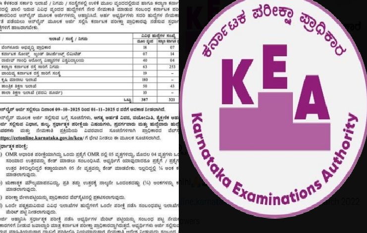 ಅ.9ರಿಂದ ನ.11ರವರೆಗೆ ಅರ್ಜಿ ಸಲ್ಲಿಸಬಹುದು. ಸ್ಪರ್ಧಾತ್ಮಕ ಪರೀಕ್ಷೆ ಮೂಲಕ ನೇಮಕ ಮಾಡಲಾಗುತ್ತದೆ. OMR ಆಧಾರಿತ ಪರೀಕ್ಷೆ. ಋಣಾತ್ಮಕ ಮೌಲ್ಯಮಾಪನ ಇದ್ದು ಪ್ರತಿ ತಪ್ಪು ಉತ್ತರಕ್ಕೆ ನಾಲ್ಕನೇ ಒಂದರಷ್ಟು (1/4) ಅಂಕ ಕಡಿತ ಮಾಡಲಾಗುತ್ತದೆ. ಒಂದೇ ಪಠ್ಯಕ್ರಮ ಇರುವ ವಿವಿಧ ಇಲಾಖೆಗಳ ಹುದ್ದೆಗಳಿಗೆ ಒಂದೇ ಪರೀಕ್ಷೆ ನಡೆಸಿ ಸಂಬಂಧಪಟ್ಟ ಇಲಾಖೆಗಳಿಗೆ ಮೆರಿಟ್ ಪಟ್ಟಿ ನೀಡಲಾಗುವುದು. ಪರೀಕ್ಷಾ ದಿನಾಂಕವನ್ನು ನಂತರದ ದಿನಗಳಲ್ಲಿ ತಿಳಿಸಲಾಗುವುದು. ಆಸಕ್ತರು ಈಗಿನಿಂದಲೇ ಪರೀಕ್ಷೆಗೆ ಸಿದ್ಧತೆ ಮಾಡಿಕೊಳ್ಳುವುದು ಉತ್ತಮ. ಹೆಚ್ಚಿನ ವಿವರಗಳಿಗೆ http://cetonline.Karnataka.gov.in/kea/ ಭೇಟಿ ನೀಡಬೇಕು ಎಂದು ಕರ್ನಾಟಕ ಪರೀಕ್ಷಾ ಪ್ರಾಧಿಕಾರದ ಕಾರ್ಯನಿರ್ವಾಹಕ ನಿರ್ದೇಶಕರು ಪ್ರಕಟಣೆ ಹೊರಡಿಸಿದ್ದಾರೆ.
