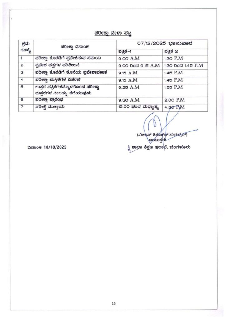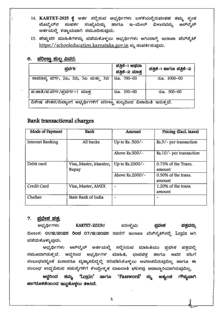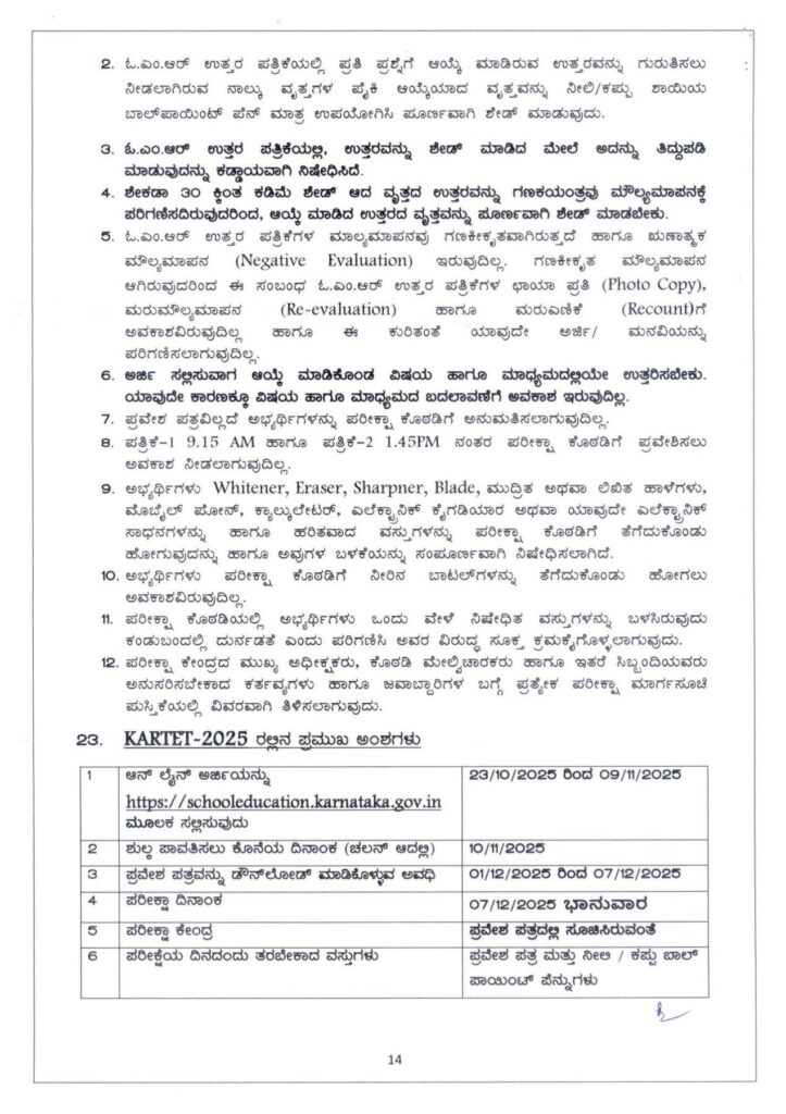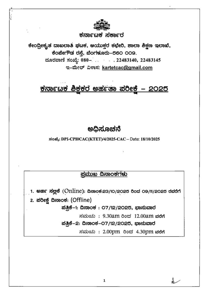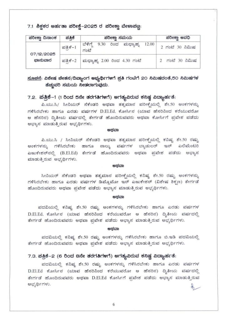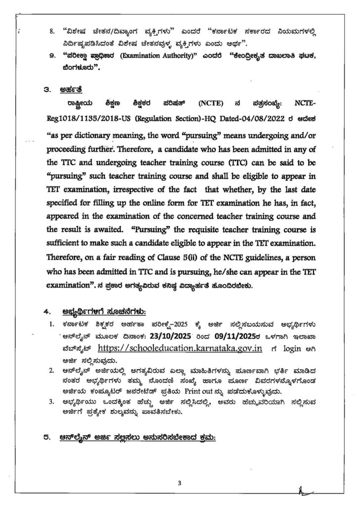 ಬೆಂಗಳೂರು : ಕರ್ನಾಟಕದಲ್ಲಿ TET ಪರೀಕ್ಷೆಗೆ ಅರ್ಜಿ ಆಹ್ವಾನಿಸಲಾಗಿದ್ದು, ಡಿ.7 ರಂದು ಶಿಕ್ಷಕರ ಅರ್ಹತಾ ಪರೀಕ್ಷೆ ನಡೆಯಲಿದೆ. ಪರೀಕ್ಷೆಗೆ ಅರ್ಜಿ ಸಲ್ಲಿಸುವ ಸಂಬಂಧ ಅಧಿಕೃತ ಸುತ್ತೋಲೆ ಹೊರಡಿಸಲಾಗಿದೆ.