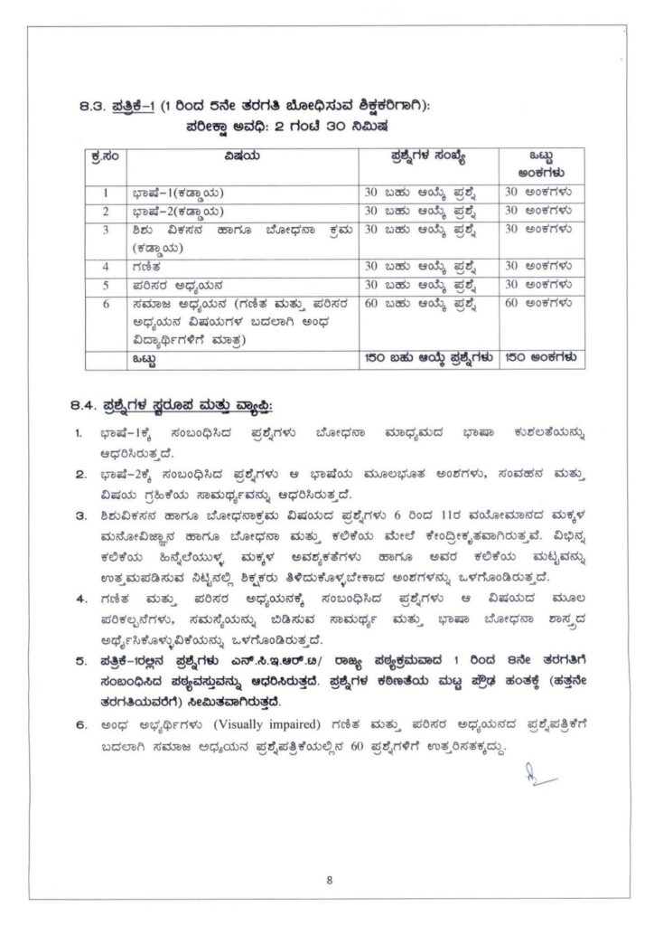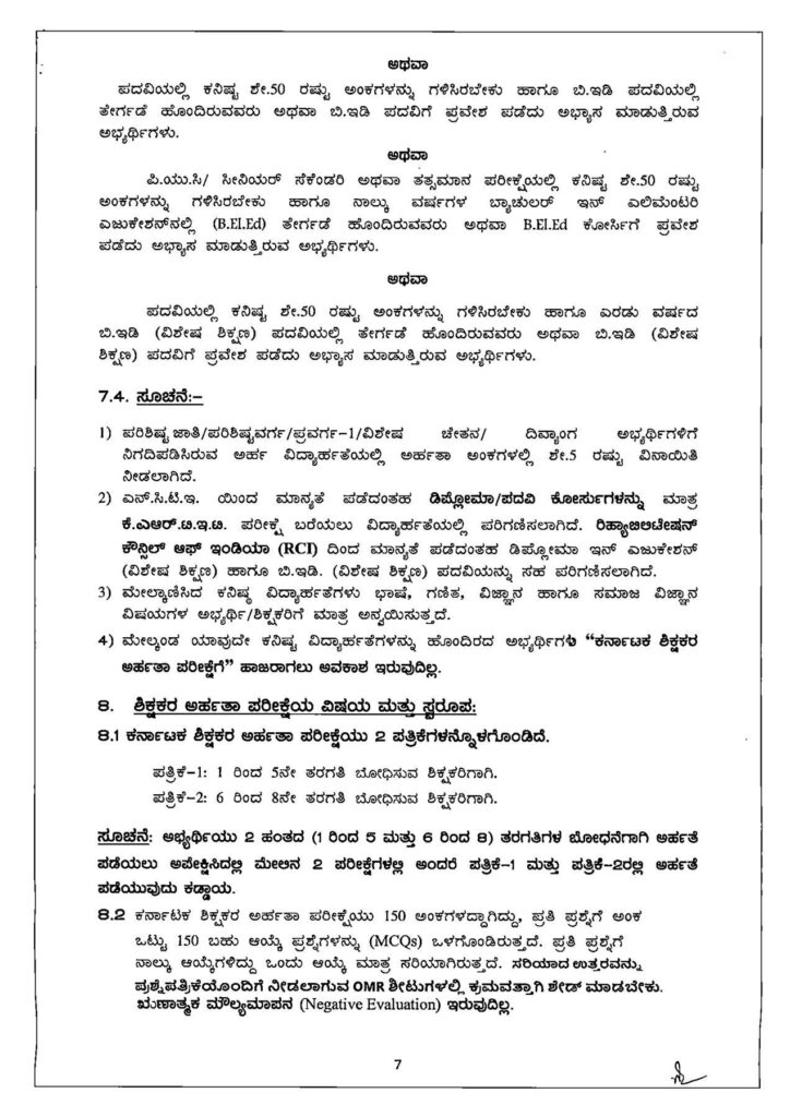 ಆರ್.ಟಿ.ಇ ಕಾಯ್ದೆಯ ಸೆಕ್ಷನ್ 23 ಉಪ ವಿಭಾಗ(1)ರ ನಿಬಂಧನೆಗಳ ಅನುಸಾರ 23 ಆಗಸ್ಟ್ 2010, 29 ಜುಲೈ 2011 ಮತ್ತು 28 ಜೂನ್ 2018 ರ ಅಧಿಸೂಚನೆಯಂತೆ ರಾಷ್ಟ್ರೀಯ ಶಿಕ್ಷಣ ಶಿಕ್ಷಕರ ಪರಿಷತ್ (NCTE) 1 ರಿಂದ 8ನೇ ತರಗತಿಗಳ ಶಿಕ್ಷಕರಾಗಿ ನೇಮಕಾತಿಗೆ ಅರ್ಹರಾಗಲು ಕನಿಷ್ಠ ಅರ್ಹತೆಗಳನ್ನು ನಿಗದಿಪಡಿಸಿದೆ.
