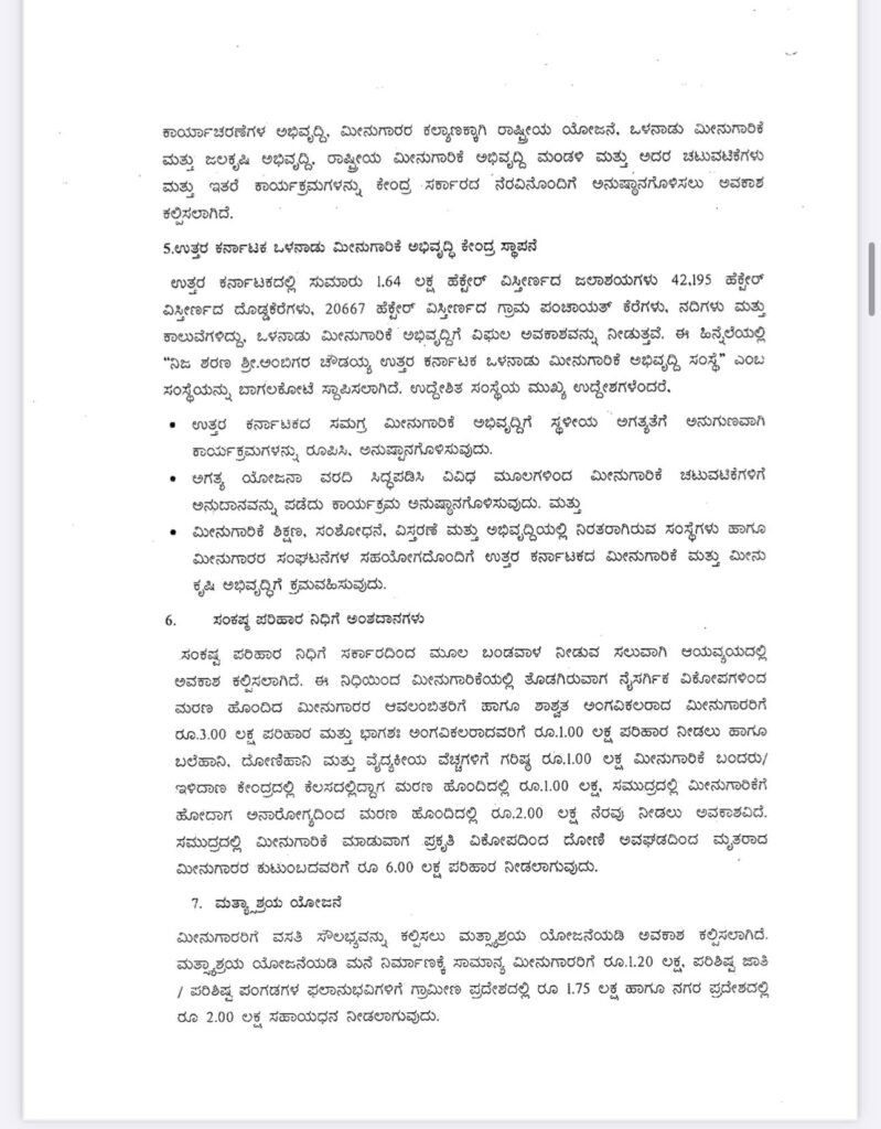 5.ಉತ್ತರ ಕರ್ನಾಟಕ ಒಳನಾಡು ಮೀನುಗಾರಿಕೆ ಅಭಿವೃದ್ಧಿ ಕೇಂದ್ರ ಸ್ಥಾಪನೆ