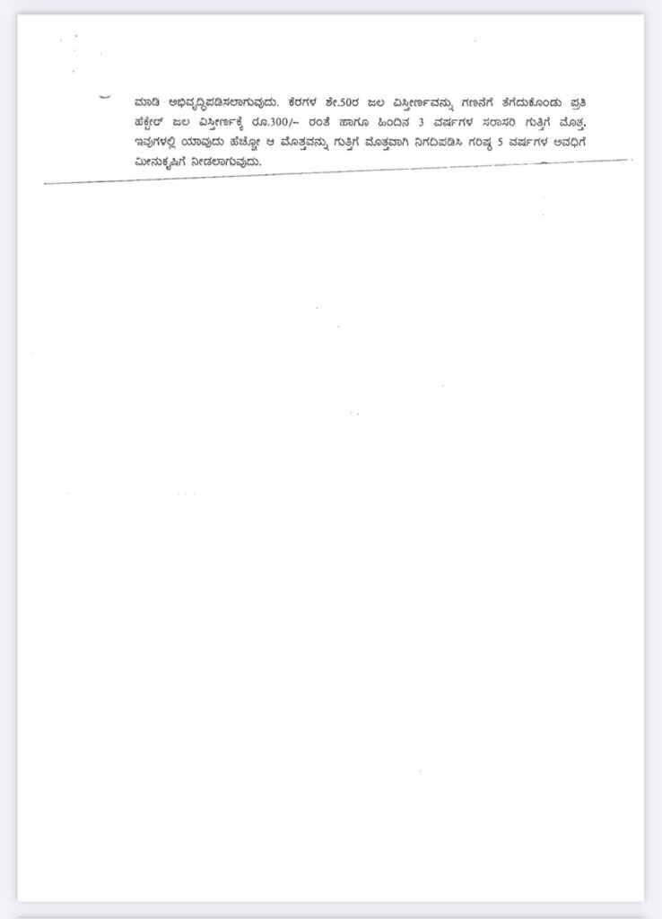 b. ರಾಜ್ಯದ ಜಲ ಪ್ರದೇಶದಲ್ಲಿ ಪ್ರತಿ ಹೆಕ್ಟೇರ್ ಉಪಯುಕ್ತತಾ ಜಲವಿಸ್ತೀರ್ಣಕ್ಕೆ 2000 ಬಲಿತ ಬಿತ್ತನೆ ಮೀನುಮರಿಗಳನ್ನು ಮೀನುಗಾರರ ಸಹಕಾರ ಸಂಘಗಳ ಮುಖಾಂತರ ಉಚಿತವಾಗಿ ಬಿತ್ತನೆ ಮಾಡಿ ಒಳನಾಡು ಮೀನು ಉತ್ಪಾದನೆಯನ್ನು ಹೆಚ್ಚಿಸಲು “ಒಳನಾಡು ಮೀನು ಕೃಷಿಗೆ ಪ್ರೋತ್ಸಾಹ” ಯೋಜನೆಯಡಿ ಮರಿಗಳನ್ನು ಬಿತ್ತನೆ ಮಾಡಲಾಗುತ್ತಿದೆ.