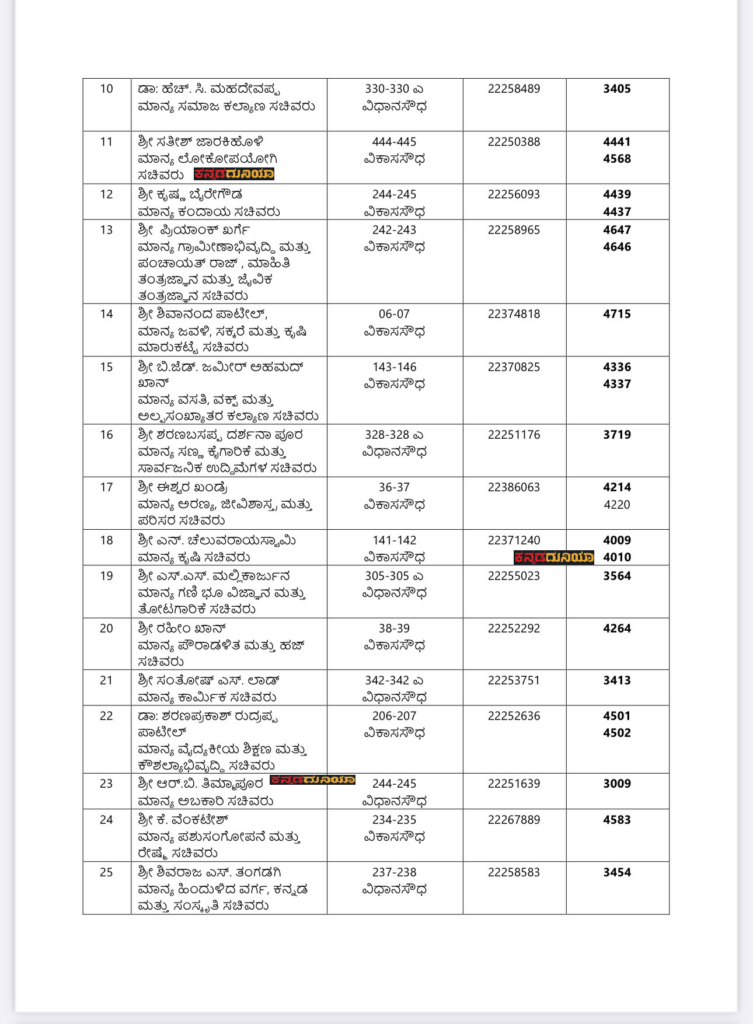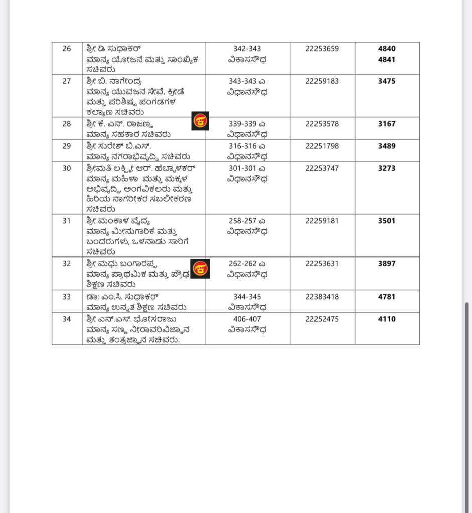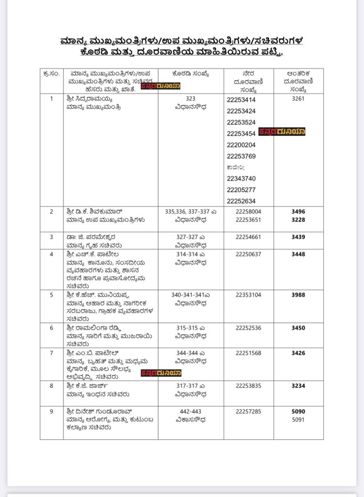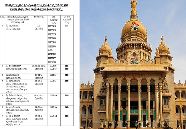 ಕರ್ನಾಟಕದ ಸಿಎಂ ಡಿಸಿಎಂ, ಸಚಿವರುಗಳ ದೂರವಾಣಿ ಸಂಖ್ಯೆ ಪಟ್ಟಿ ಇಲ್ಲಿದೆ