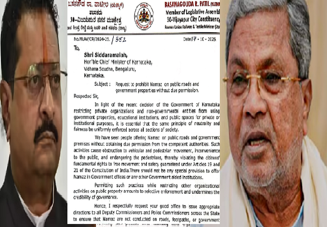 ಬೆಂಗಳೂರು : ಸರ್ಕಾರಿ ಸ್ಥಳಗಳಲ್ಲಿ ನಮಾಜ್ ನಿಷೇಧಿಸಿ ಎಂದು ಸಿಎಂ ಸಿದ್ದರಾಮಯ್ಯಗೆ ಬಸನಗೌಡ ಪಾಟೀಲ್ ಯತ್ನಾಳ್ ಪತ್ರ ಬರೆದಿದ್ದಾರೆ.