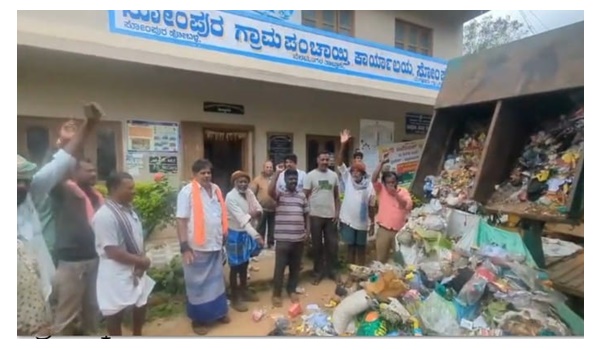 ಪಂಚಾಯಿತಿ ಕಚೇರಿ ಬಾಗಿಲಲ್ಲಿ ಲೋಡ್ ಗಟ್ಟಲೆ ಕಸ ಸುರಿದು ಜನರು ಪ್ರತಿಭಟನೆ ನಡೆಸಿದ್ದಾರೆ.
