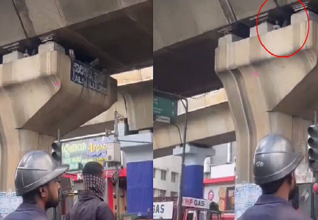 A shocking incident was reported from Jalahalli Cross, where a man was found sleeping inside a hollow section of a flyover pillar. The bizarre sight… pic.twitter.com/s6EWWLnqcO