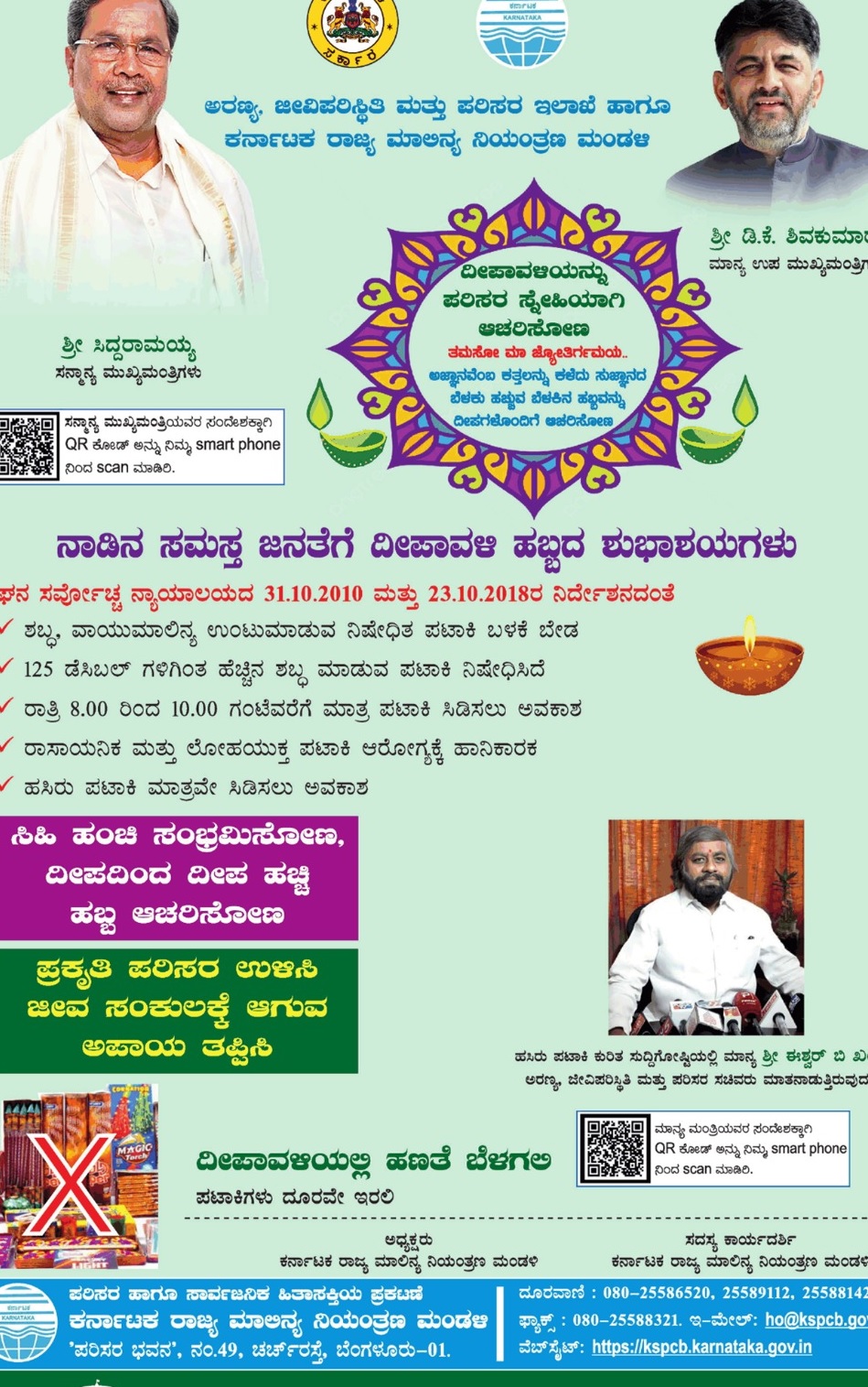 ಟ್ವೀಟ್ ಮಾಡಿರುವ ಸಿಎಂ ಸಿದ್ದರಾಮಯ್ಯ ”ನಾಡಬಂಧುಗಳಿಗೆ ಬೆಳಕಿನ ಹಬ್ಬ ದೀಪಾವಳಿಯ ಶುಭಾಶಯಗಳು. ಸಂಭ್ರಮ – ಸಡಗರದಿಂದ ದೀಪಾವಳಿಯನ್ನು ಸಂಭ್ರಮಿಸೋಣ, ಜೊತೆಗೆ ಪರಿಸರ ಕಾಳಜಿಯನ್ನು ಮರೆಯದಿರೋಣ. ಅಜ್ಞಾನದ ಕತ್ತಲು ಕಳೆದು ಸುಜ್ಞಾನದ ಬೆಳಕು ಬೆಳಗುವ ಈ ಹಬ್ಬವನ್ನು ಹಣತೆಗಳೊಂದಿಗೆ ಆಚರಿಸೋಣ. ಘನ ಸರ್ವೋಚ್ಚ ನ್ಯಾಯಾಲಯದ ನಿರ್ದೇಶನಗಳನ್ನು ಎಲ್ಲರೂ ತಪ್ಪದೆ ಪಾಲಿಸಿ, ಸುರಕ್ಷಿತವಾಗಿರಿ” ಎಂದಿದ್ದಾರೆ.