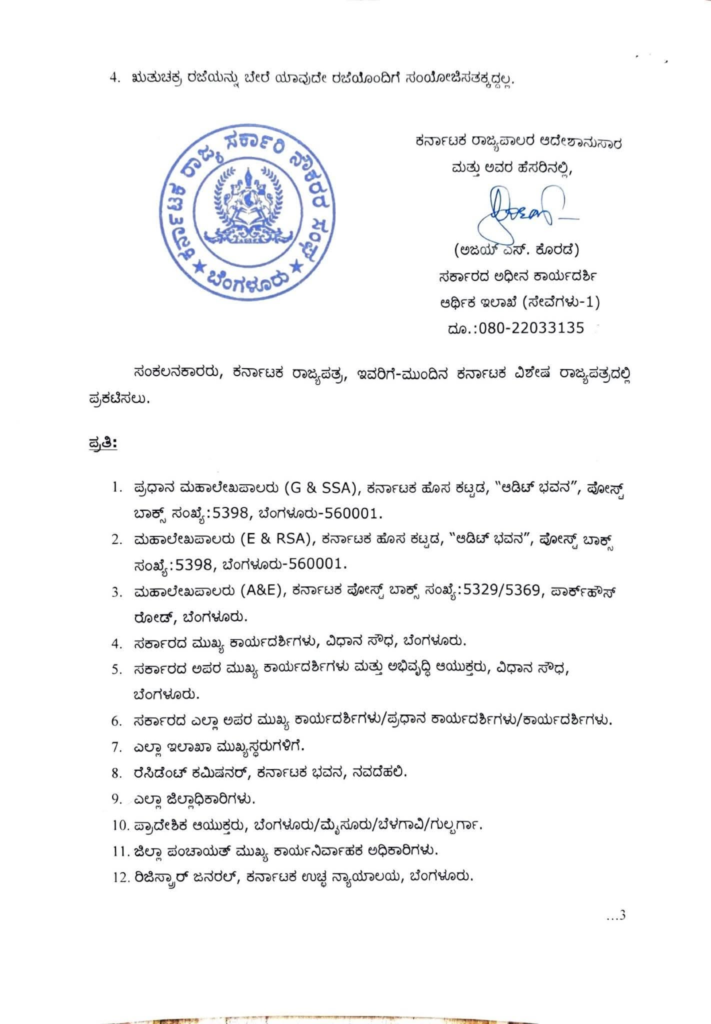 3. ಈ ರಜೆಯನ್ನು ರಜೆ/ಹಾಜರಾತಿ ಪುಸ್ತಕದಲ್ಲಿ ಪ್ರತ್ಯೇಕವಾಗಿ ನಮೂದಿಸತಕ್ಕದ್ದು.