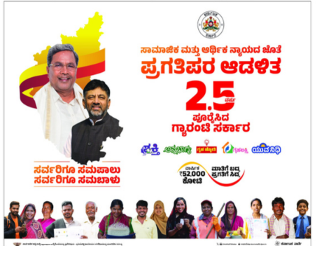 ಬೆಂಗಳೂರು: ಐದು ಗ್ಯಾರಂಟಿ ಯೋಜನೆ ಯಶಸ್ವಿ ಜಾರಿ, ಸುಧಾರಣಾ ಯೋಜನೆಗಳ ಕೊಡುಗೆ, ರಾಜಕೀಯ ತಲ್ಲಣಗಳ ನಡುವೆ ಮುಖ್ಯಮಂತ್ರಿ ಸಿದ್ದರಾಮಯ್ಯ ನೇತೃತ್ವದ ರಾಜ್ಯ ಕಾಂಗ್ರೆಸ್ ಸರ್ಕಾರ 2.5 ವರ್ಷ ಅವಧಿ ಪೂರ್ಣಗೊಳಿಸಿದೆ.
