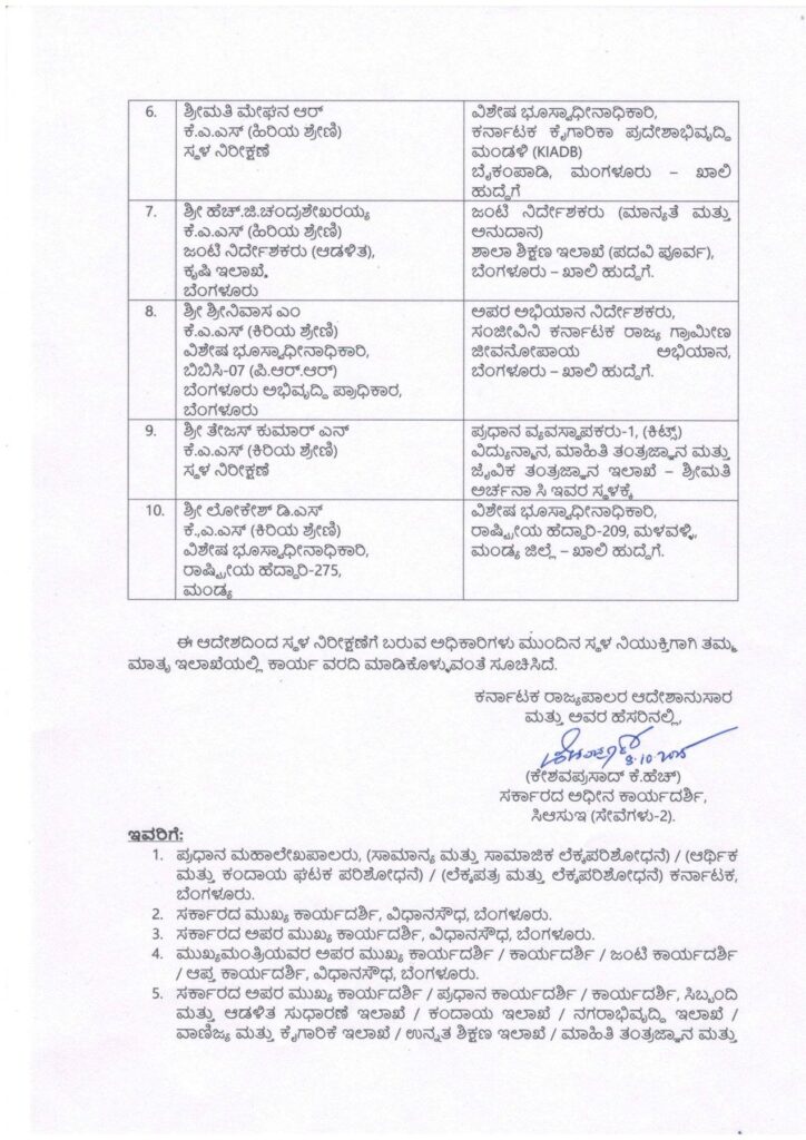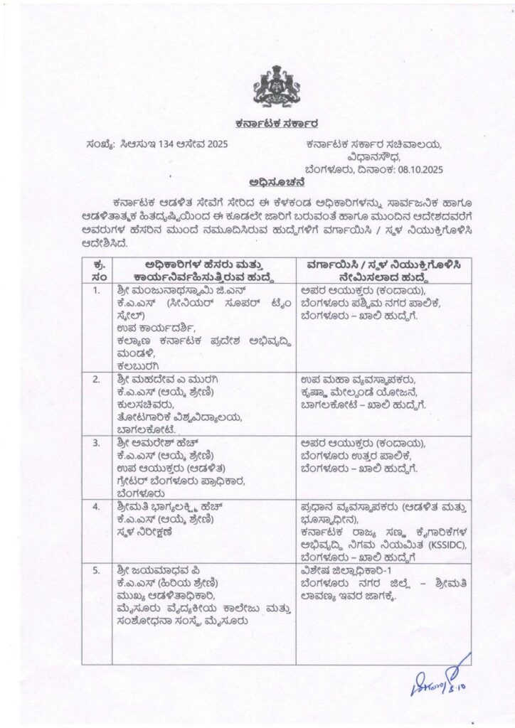 BREAKING : ರಾಜ್ಯದ 10 ಮಂದಿ ‘KAS’ ಅಧಿಕಾರಿಗಳ ವರ್ಗಾವಣೆ ಮಾಡಿ ಸರ್ಕಾರ ಆದೇಶ |Transfer