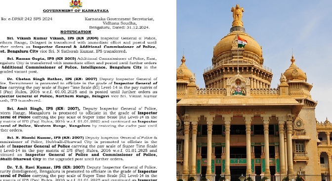 ಚೇತನ್ ಸಿಂಗ್ ರಾಥೋಡ್: ಐಜಿಪಿ, ಈಶಾನ್ಯ ವಲಯ (ಬೆಳಗಾವಿ), ವಿಕಾಸ್ ಕುಮಾರ್: ಹೆಚ್ಚುವರಿ ಪೊಲೀಸ್ ಆಯುಕ್ತ, ಬೆಂಗಳೂರು ಪಶ್ಚಿಮ, ರಮಣ ಗುಪ್ತಾ: ಹೆಚ್ಚುವರಿ ಪೊಲೀಸ್ ಆಯುಕ್ತ, ಗುಪ್ತಚರ ವಿಭಾಗ, ಅಮಿತ್ ಸಿಂಗ್: ಐಜಿಪಿ, ಪಶ್ಚಿಮ ವಲಯ(ಮಂಗಳೂರು), ವಂಶಿಕೃಷ್ಣ: ಡಿಐಜಿ, ಪೊಲೀಸ್ ನೇಮಕಾತಿ ವಿಭಾಗ, ಬೆಂಗಳೂರು, ಕಾರ್ತಿಕ್ ರೆಡ್ಡಿ: ರಾಮನಗರ ಪೊಲೀಸ್ ವರಿಷ್ಠಾಧಿಕಾರಿಯಾಗಿ ಮುಂದುವರಿಕೆ, ಕುಲದೀಪ್ ಕುಮಾರ್ ಜೈನ್: ಡಿಐಜಿ, ಆಡಳಿತ ವಿಭಾಗದ ಜಂಟಿ ಪೊಲೀಸ್ ಆಯುಕ್ತ, ಡಾ.ಭೀಮಾಶಂಕರ ಗುಳೇದ್: ಬೆಳಗಾವಿ ಎಸ್ ಪಿಯಾಗಿ ಮುಂದುವರಿಕೆ, ಎನ್ ಶಶಿ ಕುಮಾರ್: ಪೊಲೀಸ್ ಮಹಾನಿರೀಕ್ಷಕರಾಗಿ ಬಡ್ತಿ, ಹುಬ್ಬಳ್ಳಿ- ಧಾರವಾಡ ನಗರ, ಡಾ.ವೈ.ಎಸ್. ರವಿ ಕುಮಾರ್: ಇನ್ಸ್ಪೆಕ್ಟರ್ ಜನರಲ್ ಆಫ್ ಪೋಲಿಸ್ ಆಗಿ ಬಡ್ತಿ (ಇಂಟಲಿಜೆನ್ಸ್, ಬೆಂಗಳೂರು. ಸಂತೋಷ್ ಬಾಬು: ಡಿಐಜಿಯಾಗಿ ಬಡ್ತಿ, ಗುಪ್ತಚರ ಇಲಾಖೆ, ಇಶಾ ಪಂತ್: ಡಿಐಜಿಯಾಗಿ ಬಡ್ತಿ, ಗುಪ್ತಚರ ಇಲಾಖೆ, ಜಿ.ಸಂಗೀತಾ: ಡಿಐಜಿ, ಸಿಐಡಿ ಅರಣ್ಯ ಘಟಕ, ಸೀಮಾ ಲಾಟ್ಕರ್: ಡಿಐಜಿ, ಮೈಸೂರು ಕಮಿಷನರ್ ಆಗಿ ಮುಂದುವರಿಕೆ, ರೇಣುಕಾ ಕೆ.ಸುಕುಮಾರ್: ಡಿಐಜಿಯಾಗಿ ಬಡ್ತಿ, ಡಿಸಿಆರ್ಇ, ಬೆಂಗಳೂರು,