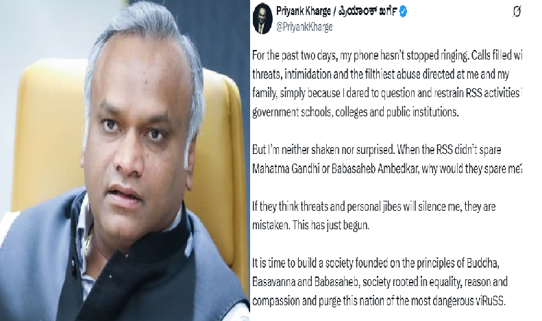 ಕಳೆದ ಎರಡು ದಿನಗಳಿಂದ ನನ್ನ ಫೋನ್ ರಿಂಗಣಿಸುವುದನ್ನು ನಿಲ್ಲಿಸಿಲ್ಲ. ಸರ್ಕಾರಿ ಶಾಲೆಗಳು, ಕಾಲೇಜುಗಳು ಮತ್ತು ಸಾರ್ವಜನಿಕ ಸಂಸ್ಥೆಗಳಲ್ಲಿ ಆರ್‌ಎಸ್‌ಎಸ್ ಚಟುವಟಿಕೆಗಳನ್ನು ಪ್ರಶ್ನಿಸುವ ಹಾಗೂ ತಡೆಯುವ ಧೈರ್ಯ ಮಾಡಿದ್ದರಿಂದ ನನ್ನ ಮತ್ತು ನನ್ನ ಕುಟುಂಬದ ವಿರುದ್ಧ ಬೆದರಿಕೆಗಳು, ಅತ್ಯಂತ ಕೀಳು ಪದಗಳ ನಿಂದನೆಗಳಿಂದ ತುಂಬಿದ ಕರೆಗಳು ಬರುತ್ತಲೇ ಇವೆ.