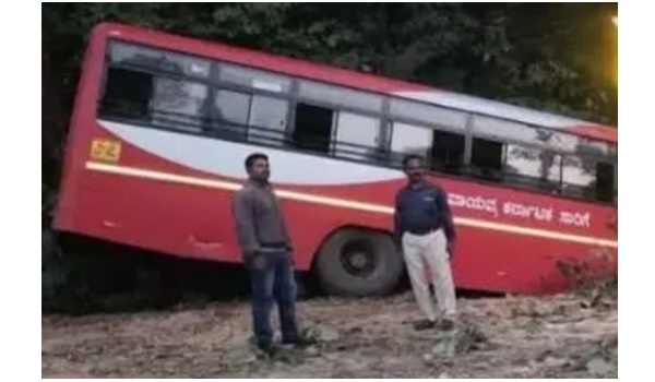 ಕಾರವಾರ: ಚಾಲಕನ ನಿಯಂತ್ರಣ ತಪ್ಪಿದ ಸಾರಿಗೆ ಬಸ್ ಮರಕ್ಕೆ ಡಿಕ್ಕಿ ಹೊಡೆದು ಕಂದಕಕ್ಕೆ ಉರುಳಿ ಬಿದ್ದ ಘಟನೆ ಉತ್ತರ ಕನ್ನಡ ಜಿಲ್ಲೆಯ ಸುಳೆಮುರ್ಕಿ ಕ್ರಾಸ್ ನಲ್ಲಿ ನಡೆದಿದೆ.
