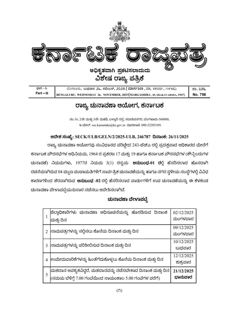ಜಿಲ್ಲಾಧಿಕಾರಿಗಳು ಚುನಾವಣಾ ಅಧಿಸೂಚನೆಯನ್ನು ಹೊರಡಿಸುವ ದಿನಾಂಕ ಮತ್ತು ದಿನ 02/12/2025