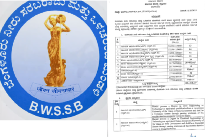 ಬೆಂಗಳೂರು : ಬೆಂಗಳೂರು ನೀರು ಸರಬರಾಜು ಮತ್ತು ಒಳಚರಂಡಿ ಮಂಡಳಿ (BWSSB) ವಿವಿಧ ಹುದ್ದೆಗಳಿಗೆ ಅರ್ಜಿ…