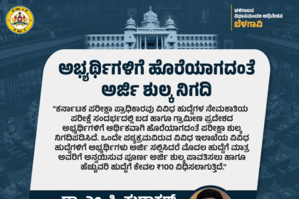 ಬೆಳಗಾವಿ: ಕರ್ನಾಟಕ ಪರೀಕ್ಷಾ ಪ್ರಾಧಿಕಾರವು ವಿವಿಧ ಹುದ್ದೆಗಳ ನೇಮಕಾತಿಯ ಪರೀಕ್ಷೆ ಸಂದರ್ಭದಲ್ಲಿ ಬಡ ಹಾಗೂ ಗ್ರಾಮೀಣ…