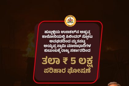 BREAKING : ಹುಬ್ಬಳ್ಳಿ ಸಿಲಿಂಡರ್ ಸ್ಪೋಟ ಕೇಸ್ : ಮೃತ ಅಯ್ಯಪ್ಪ ಮಾಲಾಧಾರಿಗಳ ಕುಟುಂಬಕ್ಕೆ ತಲಾ 5 ಲಕ್ಷ ರೂ. ಪರಿಹಾರ ಘೋಷಿಸಿದ ‘CM ಸಿದ್ದರಾಮಯ್ಯ.!