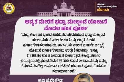 ಬೆಂಗಳೂರು : ಮಧ್ಯ ಕರ್ನಾಟಕ ಭಾಗದ ಬಹುದಿನದ ಬೇಡಿಕೆಯಾದ ಭದ್ರಾ ಮೇಲ್ದಂಡೆ ಯೋಜನೆಯ ಮೊದಲನೇ ಹಂತವನ್ನು…