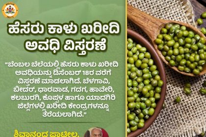 ರಾಜ್ಯದ ರೈತರಿಗೆ ಗುಡ್ ನ್ಯೂಸ್ : ಬೆಂಬಲ ಬೆಲೆಯಲ್ಲಿ ಹೆಸರುಕಾಳು ಖರೀದಿ ಅವಧಿ ಡಿ. 18ರವರೆಗೆ ವಿಸ್ತರಣೆ.!