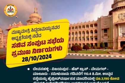 ಬೆಂಗಳೂರು : ಸಿಎಂ ಸಿದ್ದರಾಮಯ್ಯ ನೇತೃತ್ವದಲ್ಲಿ ನಿನ್ನೆ ಸಚಿವ ಸಂಪುಟ ಸಭೆ ನಡೆದಿದ್ದು, ಸಭೆಯಲ್ಲಿ ಮಹತ್ವದ…