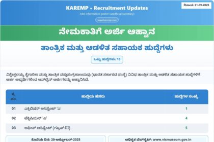 ಬೆಂಗಳೂರು : ಬೆಂಗಳೂರು ಉತ್ತರ ಜಿಲ್ಲಾ ಗೃಹರಕ್ಷಕ ದಳ ಸ್ವಯಂ ಸೇವಕ ಗೃಹರಕ್ಷಕರ ಖಾಲಿ ಇರುವ…