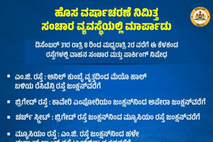ಬೆಂಗಳೂರು : ಹೊಸ ವರ್ಷಾಚರಣೆ ನಿಮಿತ್ತ ವಾಹನ ಸಂಚಾರಕ್ಕೆ ಪರ್ಯಾಯ ವ್ಯವಸ್ಥೆ ಮಾಡಲಾಗಿದೆ. ಸಾರ್ವಜನಿಕರು ಈ…