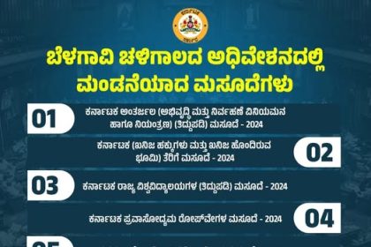 ಬೆಳಗಾವಿ : ಬೆಳಗಾವಿ ಚಳಿಗಾಲದ ಅಧಿವೇಶನದಲ್ಲಿ 8 ಮಹತ್ವದ ಮಸೂದೆಗಳನ್ನು ಮಂಡಿಸಲಾಗಿದೆ. ಬೆಳಗಾವಿ ಚಳಿಗಾಲದ ಅಧಿವೇಶನದಲ್ಲಿ…