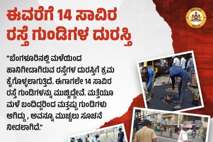 ಬೆಂಗಳೂರು : ಬೆಂಗಳೂರಿನಲ್ಲಿ ಇದುವರೆಗೆ 14 ಸಾವಿರ ರಸ್ತೆ ಗುಂಡಿಗಳ ದುರಸ್ಥಿ ಮಾಡಲಾಗಿದೆ ಎಂದು ಸಿಎಂ…