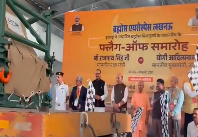 ಲಕ್ನೋದಲ್ಲಿರುವ ಬ್ರಹ್ಮೋಸ್ ಏರೋಸ್ಪೇಸ್ ಘಟಕದಲ್ಲಿ ಉತ್ಪಾದಿಸಲಾದ ಮೊದಲ ಬ್ಯಾಚ್ ಬ್ರಹ್ಮೋಸ್ ಕ್ಷಿಪಣಿಗಳಿಗೆ ರಕ್ಷಣಾ ಸಚಿವ ರಾಜನಾಥ್ ಸಿಂಗ್ ಮತ್ತು ಯುಪಿ ಮುಖ್ಯಮಂತ್ರಿ ಯೋಗಿ ಆದಿತ್ಯನಾಥ್ ಹಸಿರು ನಿಶಾನೆ ತೋರಿದರು.