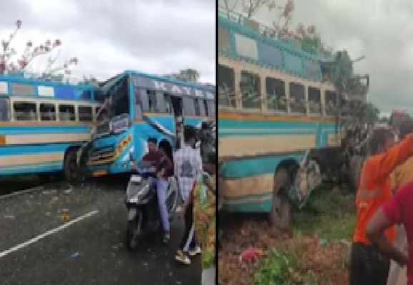 ತೆಂಕಾಸಿ-ಮಧುರೈ ರಸ್ತೆಯಲ್ಲಿ ಈ ಅಪಘಾತ ಸಂಭವಿಸಿದೆ. ಡಿಕ್ಕಿಯ ಪರಿಣಾಮ ಒಂದು ಬಸ್ನ ಮುಂಭಾಗವು ಸಂಪೂರ್ಣವಾಗಿ ನಾಶವಾಗಿದೆ. ಅಪಘಾತ ಸ್ಥಳದ ದೃಶ್ಯಗಳು ರಸ್ತೆಯಾದ್ಯಂತ ಚೂರುಚೂರಾದ ಗಾಜುಗಳನ್ನು ತೋರಿಸುತ್ತವೆ. ಈ ಘಟನೆಯು ಪ್ರದೇಶದಲ್ಲಿ ಭೀತಿಯನ್ನುಂಟುಮಾಡಿದೆ. ಸ್ಥಳೀಯರು ಮತ್ತು ತುರ್ತು ಪ್ರತಿಕ್ರಿಯೆ ನೀಡುವವರು ಸ್ಥಳದಲ್ಲಿ ಜಮಾಯಿಸಿದ್ದರಿಂದ ಸಂಚಾರ ಅಸ್ತವ್ಯಸ್ತವಾಗಿತ್ತು.