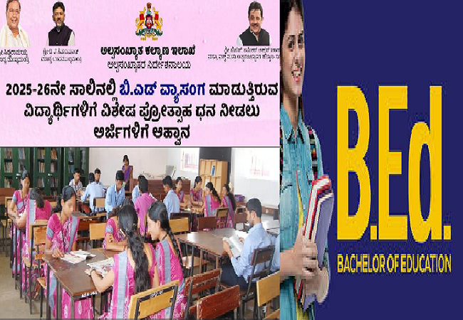 ಬೆಂಗಳೂರು : 2025-26ನೇ ಸಾಲಿನಲ್ಲಿ ಬಿ.ಎಡ್ ವ್ಯಾಸಂಗ ಮಾಡುತ್ತಿರುವ ವಿದ್ಯಾರ್ಥಿಗಳಿಗೆ ವಿಶೇಷ ಪ್ರೋತ್ಸಾಹ ಧನ ನೀಡಲು ಅರ್ಜಿಗಳಿಗೆ ಆಹ್ವಾನಿಸಿದೆ.