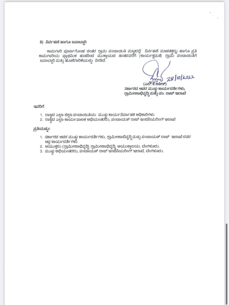 7. ನರೇಗಾ ಯೋಜನೆಯ ಮಾರ್ಗಸೂಚಿಗಳಂತೆ ಕಡ್ಡಾಯವಾಗಿ ಗ್ರಾಮ ಸಭಾ ಅನುಮೋದನೆಯಾದ ನಂತರ ಕ್ರಿಯಾಯೋಜನೆಯಲ್ಲಿ ಸೇರಿಸಿಕೊಂಡು ಅನುಷ್ಠಾನಗೊಳಿಸುವುದು.
