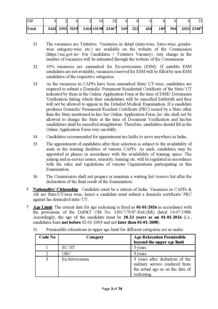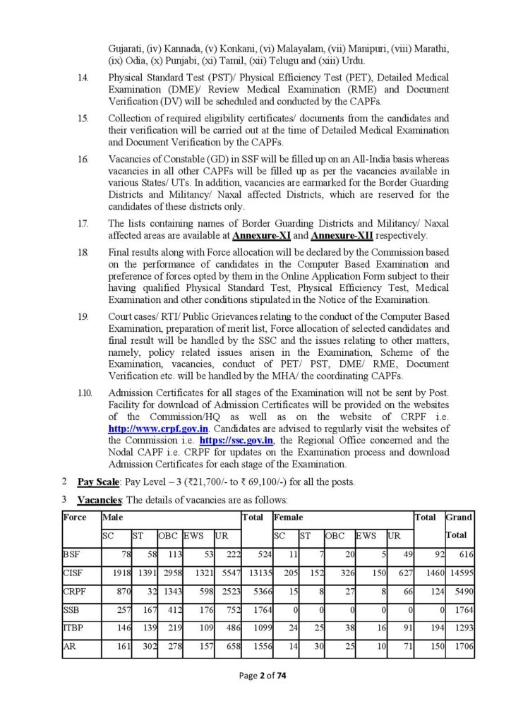 ವರ್ಗವಾರು ವಿಂಗಡಣೆಯಲ್ಲಿ SC ಗಳಿಗೆ 3,702, ST ಗಳಿಗೆ 2,313, OBC ಗಳಿಗೆ 5,765, EWS ಗಳಿಗೆ 2,605 ಮತ್ತು UR ವರ್ಗಕ್ಕೆ 11,102 ಸ್ಥಾನಗಳು ಸೇರಿವೆ. ಆಯ್ಕೆಯಾದ ನಂತರ, ಅಭ್ಯರ್ಥಿಗಳನ್ನು BSF, CISF, CRPF, SSB, ITBP, ಅಸ್ಸಾಂ ರೈಫಲ್ಸ್ ಮತ್ತು SSF ನಂತಹ ಪ್ರಮುಖ ಅರೆಸೈನಿಕ ಪಡೆಗಳಲ್ಲಿ ನಿಯೋಜಿಸಲಾಗುತ್ತದೆ.
