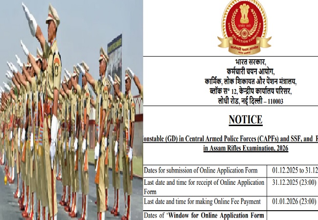 10 ನೇ ತರಗತಿ ಉತ್ತೀರ್ಣರಾದ ಅಭ್ಯರ್ಥಿಗಳು ತಮ್ಮ ಅರ್ಜಿಗಳನ್ನು ssc.gov.in ಮೂಲಕ ಸಲ್ಲಿಸಬಹುದು ಮತ್ತು ಕಂಪ್ಯೂಟರ್ ಆಧಾರಿತ ಪರೀಕ್ಷೆಯನ್ನು ಫೆಬ್ರವರಿ ಮತ್ತು ಏಪ್ರಿಲ್ 2026 ರ ನಡುವೆ ತಾತ್ಕಾಲಿಕವಾಗಿ ನಿಗದಿಪಡಿಸಲಾಗಿದೆ.