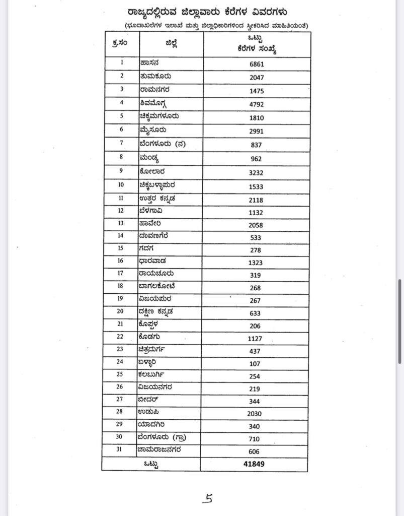 ಹಾಸನದಲ್ಲಿ 6861 , ತುಮಕೂರು 2047,ರಾಮನಗರ 1475, ಶಿವಮೊಗ್ಗ 4792,