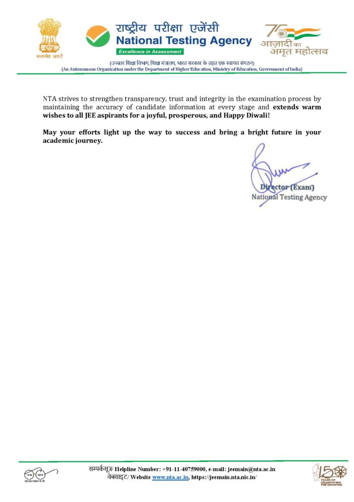 ಈ ಸಂಬಂಧ ಈ ವಾರ ಅಥವಾ ಮುಂದಿನ ವಾರ ಅಧಿಸೂಚನೆ ಬಿಡುಗಡೆಯಾಗುವ ಸಾಧ್ಯತೆಯಿದೆ. ಜೆಇಇ ಮುಖ್ಯ ಪರೀಕ್ಷೆಗಳ ಎರಡನೇ ಹಂತದ ಅರ್ಜಿಗಳು ಜನವರಿ ಕೊನೆಯ ವಾರದಿಂದ ಪ್ರಾರಂಭವಾಗುವ ಸಾಧ್ಯತೆಯಿದೆ ಎಂದು ಎನ್ಟಿಎ ತನ್ನ ಹೇಳಿಕೆಯಲ್ಲಿ ತಿಳಿಸಿದೆ. ಏತನ್ಮಧ್ಯೆ, ಪ್ರತಿ ವರ್ಷ ಸುಮಾರು 24 ಲಕ್ಷ ಅಭ್ಯರ್ಥಿಗಳು ಜೆಇಇ ಮುಖ್ಯ ಪತ್ರಿಕೆ 1 ಮತ್ತು 2 ಕ್ಕೆ ಒಟ್ಟಿಗೆ ಅರ್ಜಿ ಸಲ್ಲಿಸುತ್ತಾರೆ. ಅದರಲ್ಲಿ ಸುಮಾರು 1.5 ಲಕ್ಷ ಅಭ್ಯರ್ಥಿಗಳು ತೆಲುಗು ರಾಜ್ಯಗಳಿಂದ ಬಂದವರು. ಪ್ರತಿಷ್ಠಿತ ಜೆಇಇ ಪರೀಕ್ಷೆಗಳಿಗೆ ವಿದ್ಯಾರ್ಥಿಗಳು ಪ್ರತಿ ವರ್ಷ ತೀವ್ರವಾಗಿ ಸ್ಪರ್ಧಿಸುತ್ತಾರೆ. ಬಿ.ಟೆಕ್ನಲ್ಲಿ ಪ್ರವೇಶ ಪಡೆಯಲು, ನೀವು ಜೆಇಇ ಮುಖ್ಯ ಪತ್ರಿಕೆ 1 ಅನ್ನು ಬರೆಯಬೇಕು ಮತ್ತು ಬಿ.ಆರ್ಕ್ ಮತ್ತು ಬಿ.ಪ್ಲಾನಿಂಗ್ ಕೋರ್ಸ್ಗಳಲ್ಲಿ ಪ್ರವೇಶ ಪಡೆಯಲು, ನೀವು ಪೇಪರ್ 2 ಅನ್ನು ಬರೆಯಬೇಕು.