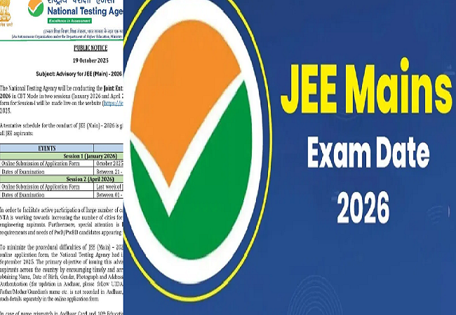 2026-27ರ ಶೈಕ್ಷಣಿಕ ವರ್ಷದ JEE ಮುಖ್ಯ 2026 ಪರೀಕ್ಷೆಗಳ ಮೊದಲ ಹಂತದ ವೇಳಾಪಟ್ಟಿಯನ್ನು ಇತ್ತೀಚೆಗೆ ಬಿಡುಗಡೆ ಮಾಡಲಾಗಿದೆ ಎಂದು ತಿಳಿದಿದೆ. ಈ ವೇಳಾಪಟ್ಟಿಯ ಪ್ರಕಾರ, JEE ಮುಖ್ಯ ಪರೀಕ್ಷೆಗಳ ಮೊದಲ ಹಂತವು ಜನವರಿ 21 ರಿಂದ 30 ರವರೆಗೆ ಮತ್ತು ಎರಡನೇ ಹಂತವು ಏಪ್ರಿಲ್ 1 ರಿಂದ 10 ರವರೆಗೆ ನಡೆಯಲಿದೆ. ಪರೀಕ್ಷೆಯು ದಿನಕ್ಕೆ ಎರಡು ಪಾಳಿಗಳಲ್ಲಿ ನಡೆಯಲಿದೆ. ಈ ಮಟ್ಟಿಗೆ, ರಾಷ್ಟ್ರೀಯ ಪರೀಕ್ಷಾ ಸಂಸ್ಥೆ (NTA) ಭಾನುವಾರ ಪರೀಕ್ಷಾ ದಿನಾಂಕಗಳನ್ನು ಪ್ರಕಟಿಸಿದೆ. ಈ ಬಾರಿ ಈ ಪರೀಕ್ಷೆಗಳ ದಿನಾಂಕಗಳನ್ನು ಕಳೆದ ವರ್ಷಕ್ಕಿಂತ 10 ದಿನ ಮುಂಚಿತವಾಗಿ ಘೋಷಿಸಲಾಗಿದೆ ಎಂಬುದು ಗಮನಾರ್ಹ. ಆದರೆ, ಆನ್ಲೈನ್ ಅರ್ಜಿಗಳನ್ನು ಸ್ವೀಕರಿಸುವ ದಿನಾಂಕವನ್ನು ಇನ್ನೂ ಘೋಷಿಸಲಾಗಿಲ್ಲ. ಆ ಪ್ರಕ್ರಿಯೆಯೂ ಈ ತಿಂಗಳು ಪ್ರಾರಂಭವಾಗುವ ಸಾಧ್ಯತೆ ಇದೆ ಎಂದು ತಿಳಿದುಬಂದಿದೆ.