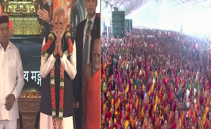 #WATCH | Udupi, Karnataka | Prime Minister Narendra Modi visits Sri Krishna Matha in Udupi and participates in the Laksha Kantha Gita Parayana programme.