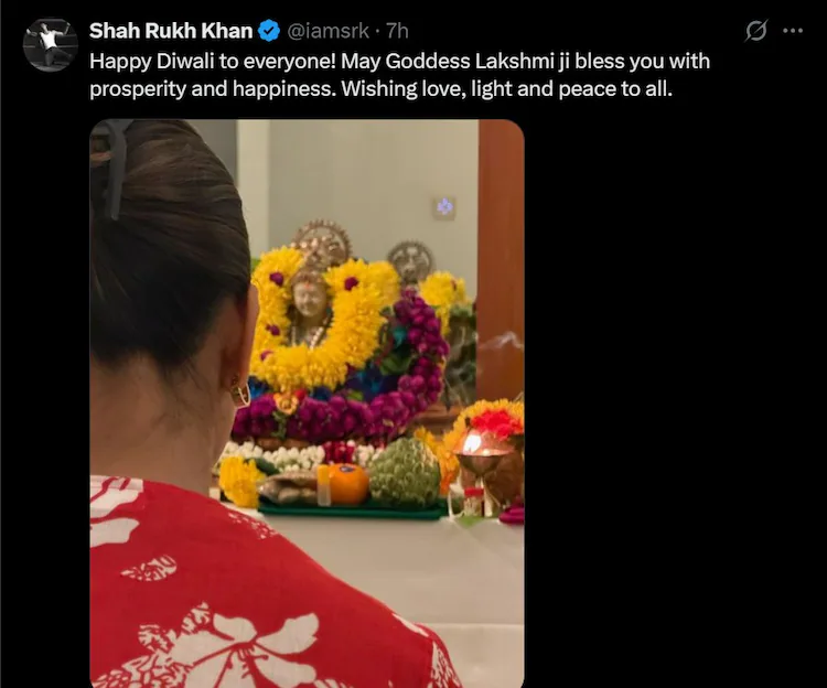 ಬಾಲಿವುಡ್‌ ನ ಅತಿದೊಡ್ಡ ದೀಪಾವಳಿ ಪಾರ್ಟಿ ಆಯೋಜಿಸುವಲ್ಲಿ ಹೆಸರುವಾಸಿಯಾದ ಶಾರುಖ್ ಖಾನ್, ಈ ವರ್ಷ ತಮ್ಮ ಆಚರಣೆಗಳನ್ನು ಸರಳವಾಗಿರಿಸಿದ್ದಾರೆ. ಅವರ ನಿವಾಸವಾದ ಮನ್ನತ್‌ನಲ್ಲಿ ನಡೆಯುತ್ತಿರುವ ನವೀಕರಣ ಕಾಮಗಾರಿಯಿಂದಾಗಿ ಸರಳವಾಗಿ ಆಚರಿಸಿದ್ದರೂ ಪ್ರತಿ ವರ್ಷದಂತೆ ಅಭಿಮಾನಿಗಳಿಗೆ ತಮ್ಮ ಶುಭಾಶಯಗಳನ್ನು ಹಂಚಿಕೊಳ್ಳಲು ಮರೆಯಲಿಲ್ಲ.