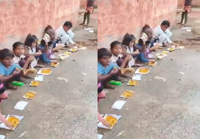 ಸಾಮಾಜಿಕ ಮಾಧ್ಯಮಗಳಲ್ಲಿ ಪ್ರಸಾರವಾಗುತ್ತಿರುವ ಈ ಕ್ಲಿಪ್ನಲ್ಲಿ ವಿಜಯಪುರ ಬ್ಲಾಕ್ನ ಹುಲ್ಪುರ್ ಗ್ರಾಮದ ಮಧ್ಯಮ ಶಾಲೆಯ ವಿದ್ಯಾರ್ಥಿಗಳು ನೆಲದ ಮೇಲೆ ಕುಳಿತಿರುವುದನ್ನು ತೋರಿಸಲಾಗಿದೆ. ಅವರು ಕಾಗದದ ತುಂಡುಗಳಲ್ಲಿ ಬಡಿಸಿದ ಆಹಾರವನ್ನು ತಿನ್ನುತ್ತಿದ್ದಾರೆ. ಮಕ್ಕಳು ಯಾವುದೇ ಆಶ್ರಯವಿಲ್ಲದೆ ಶಾಲೆಯ ಕಾಂಪೌಂಡ್ ನೆಲದ ಮೇಲೆ ಕುಳಿತು ತಟ್ಟೆಗಳ ಬದಲಿಗೆ ಹರಿದ ಕಾಗದದ ತುಂಡುಗಳಿಂದ ಊಟ ಮಾಡುವುದನ್ನು ಸಹ ವೀಡಿಯೊ ತೋರಿಸುತ್ತದೆ.