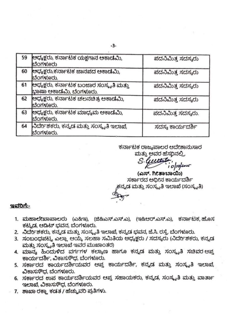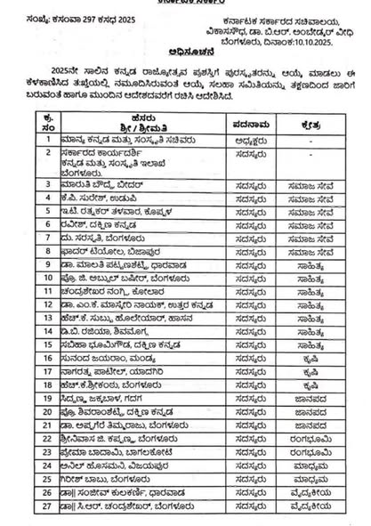 2025ನೇ ಸಾಲಿನ ಕನ್ನಡ ರಾಜ್ಯೋತ್ಸವ ಪ್ರಶಸ್ತಿಗೆ ಪುರಸ್ಕೃತರನ್ನು ಆಯ್ಕೆ ಮಾಡಲು ಈ ಕೆಳಕಾಣಿಸಿದ ತ:ಖ್ಯೆಯಲ್ಲಿ ನಮೂದಿಸಿರುವಂತೆ ಆಯ್ಕೆ ಸಲಹಾ ಸಮಿತಿಯನ್ನು ತಕ್ಷಣದಿಂದ ಜಾರಿಗೆ ಬರುವಂತೆ ಹಾಗೂ ಮುಂದಿನ ಆದೇಶದವರೆಗೆ ರಚಿಸಿ ಆದೇಶಿಸಿದೆ..