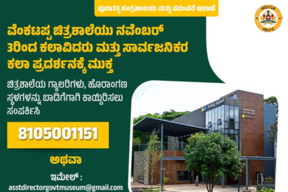 ಬೆಂಗಳೂರು: ಪುರಾತತ್ವ ಸಂಗ್ರಹಾಲಯ ಮತ್ತು ಪರಂಪರೆ ಇಲಾಖೆಯಡಿ ಕಾರ್ಯನಿರ್ವಹಿಸುತ್ತಿರುವ ಬೆಂಗಳೂರಿನ ವೆಂಕಟಪ್ಪ ಚಿತ್ರಶಾಲೆಯು ನ.3ರಿಂದ ಕಲಾವಿದರು…