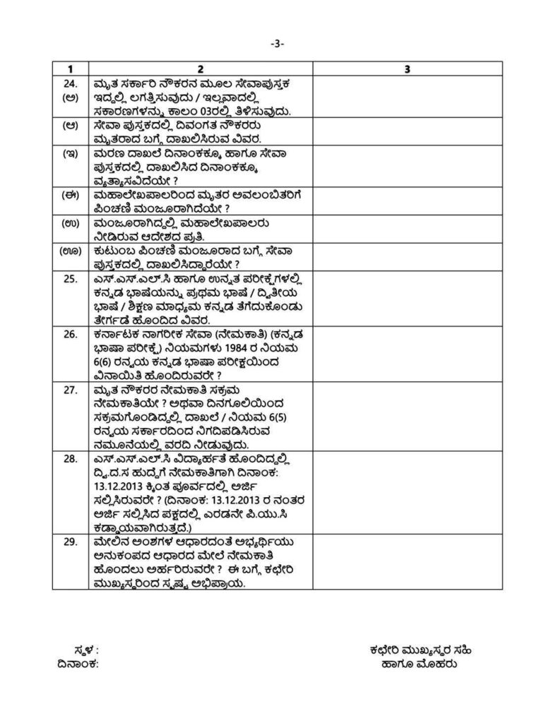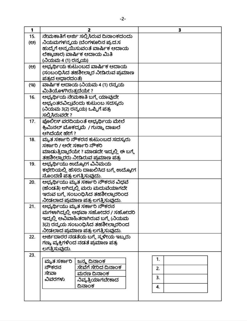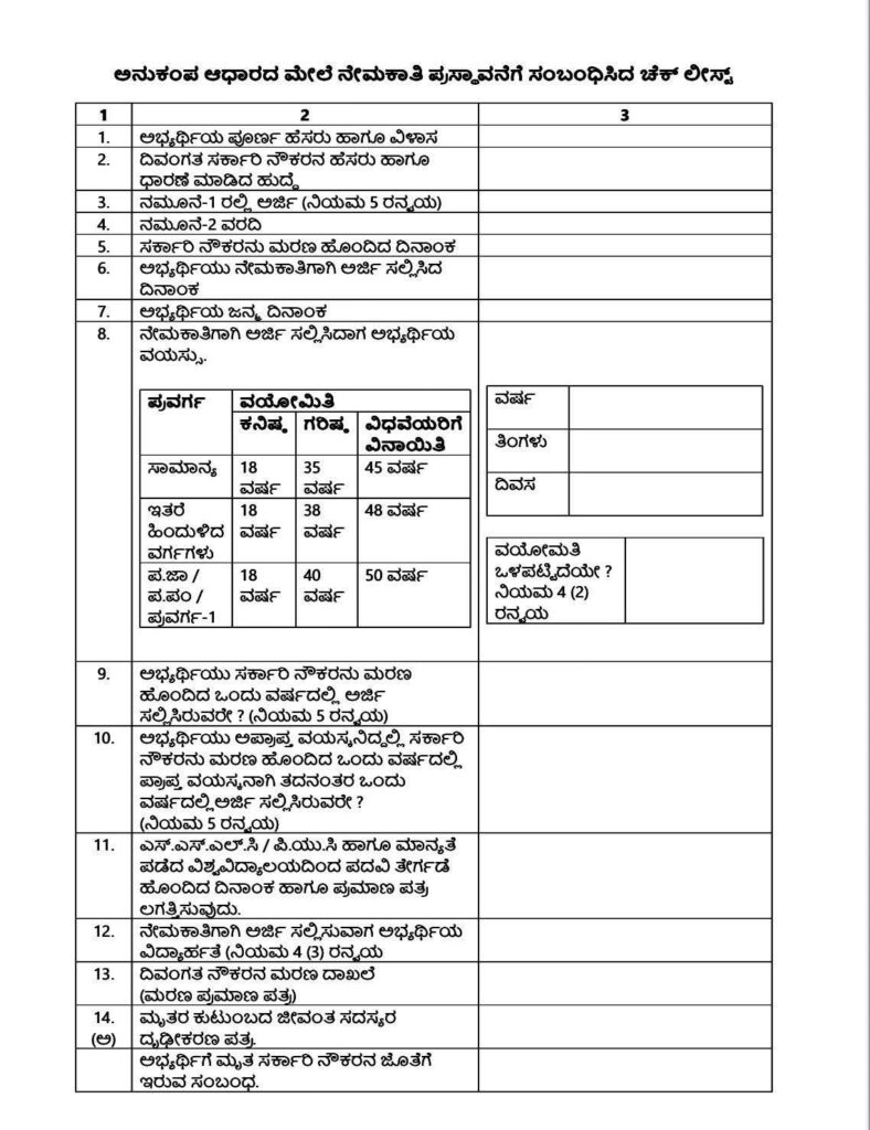 ಬೆಂಗಳೂರು : ರಾಜ್ಯ ಸರ್ಕಾರದ ಅನುಕಂಪ ಆಧಾರದ ನೇಮಕಾತಿಗೆ ಅರ್ಜಿ ಸಲ್ಲಿಸಲು ಏನೆಲ್ಲಾ ದಾಖಲೆಗಳು ಬೇಕು..? ಯಾವ ಮಾಹಿತಿಯನ್ನು ನೀವು ಸಲ್ಲಿಸಬೇಕು.! ಇಲ್ಲಿದೆ ಸಂಪೂರ್ಣ ಮಾಹಿತಿ.