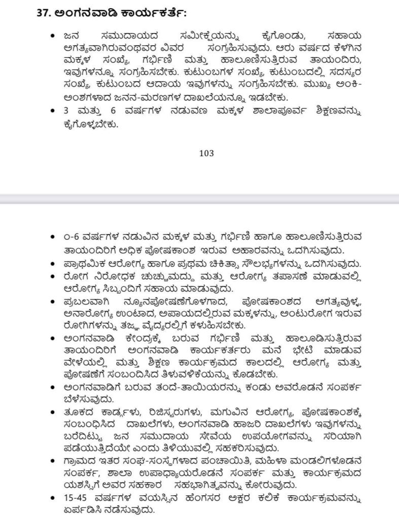 ಅಂಗನವಾಡಿ ಕೇಂದ್ರಕ್ಕೆ ಬರುವ ಗರ್ಭಿಣಿ ಮತ್ತು ಹಾಲೂಡಿಸುತ್ತಿರುವ ತಾಯಂದಿರಿಗೆ ಅಂಗನವಾಡಿ ಕಾರ್ಯಕರ್ತರು ಮನೆ ಭೇಟಿ ಮಾಡುವ ವೇಳೆಯಲ್ಲಿ ಮತ್ತು ಶಿಕ್ಷಣ ಕಾರ್ಯಕ್ರಮದ ಕಾಲದಲ್ಲಿ ಆರೋಗ್ಯ ಮತ್ತು ಪೋಷಣೆಗೆ ಸಂಬಂದಿಸಿದ ತಿಳುವಳಿಕೆಯನ್ನು ಕೊಡಬೇಕು.